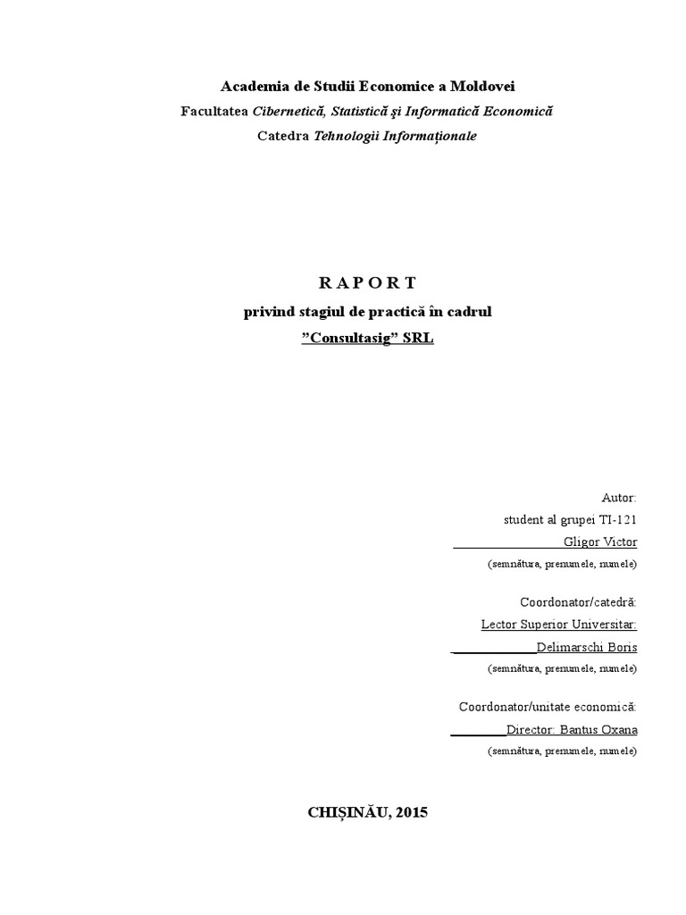 untuk "Raport De Practica Model Completat"